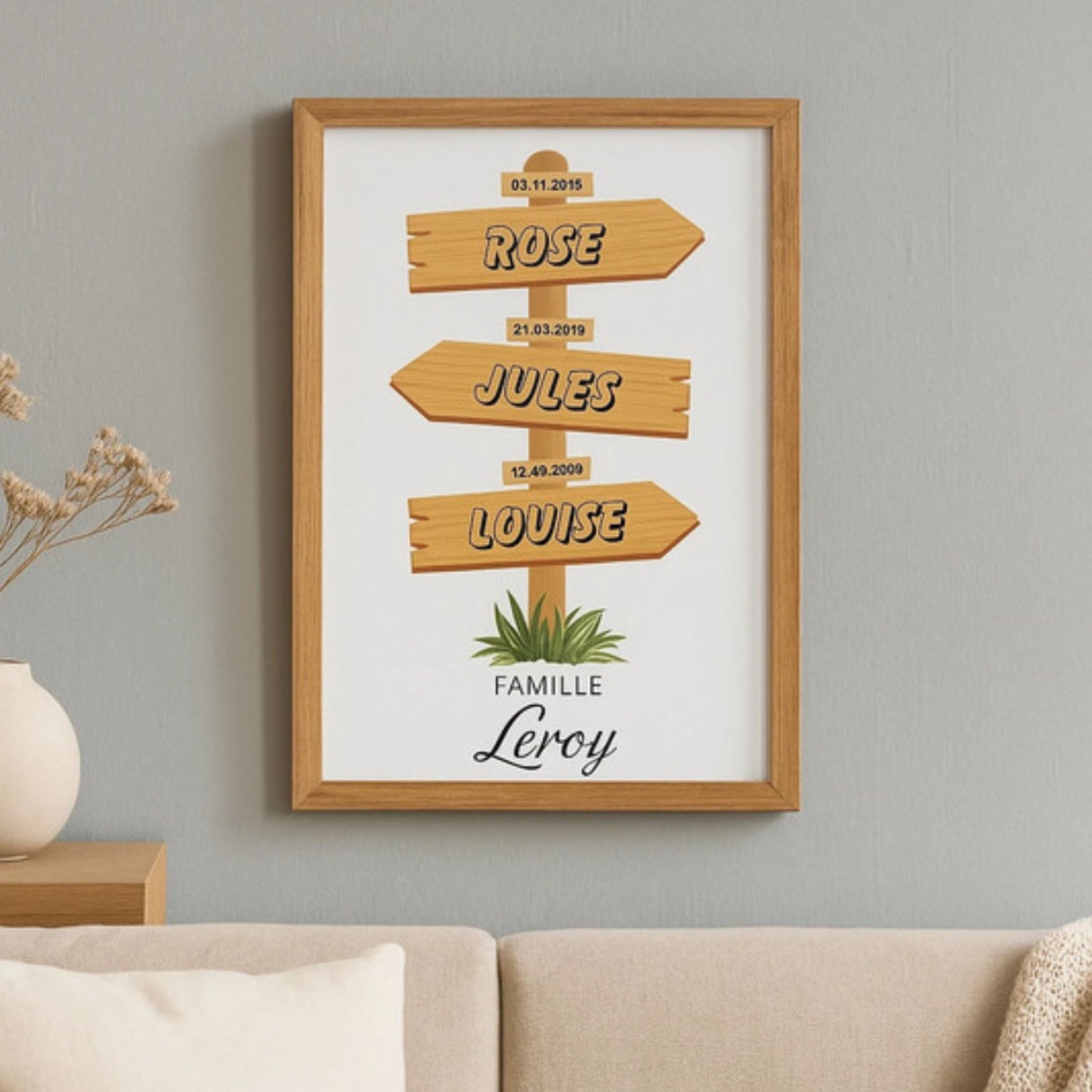 👨‍👩‍👧‍👦 Affiche Famille personnalisée – Panneau avec prénoms et dates de naissance